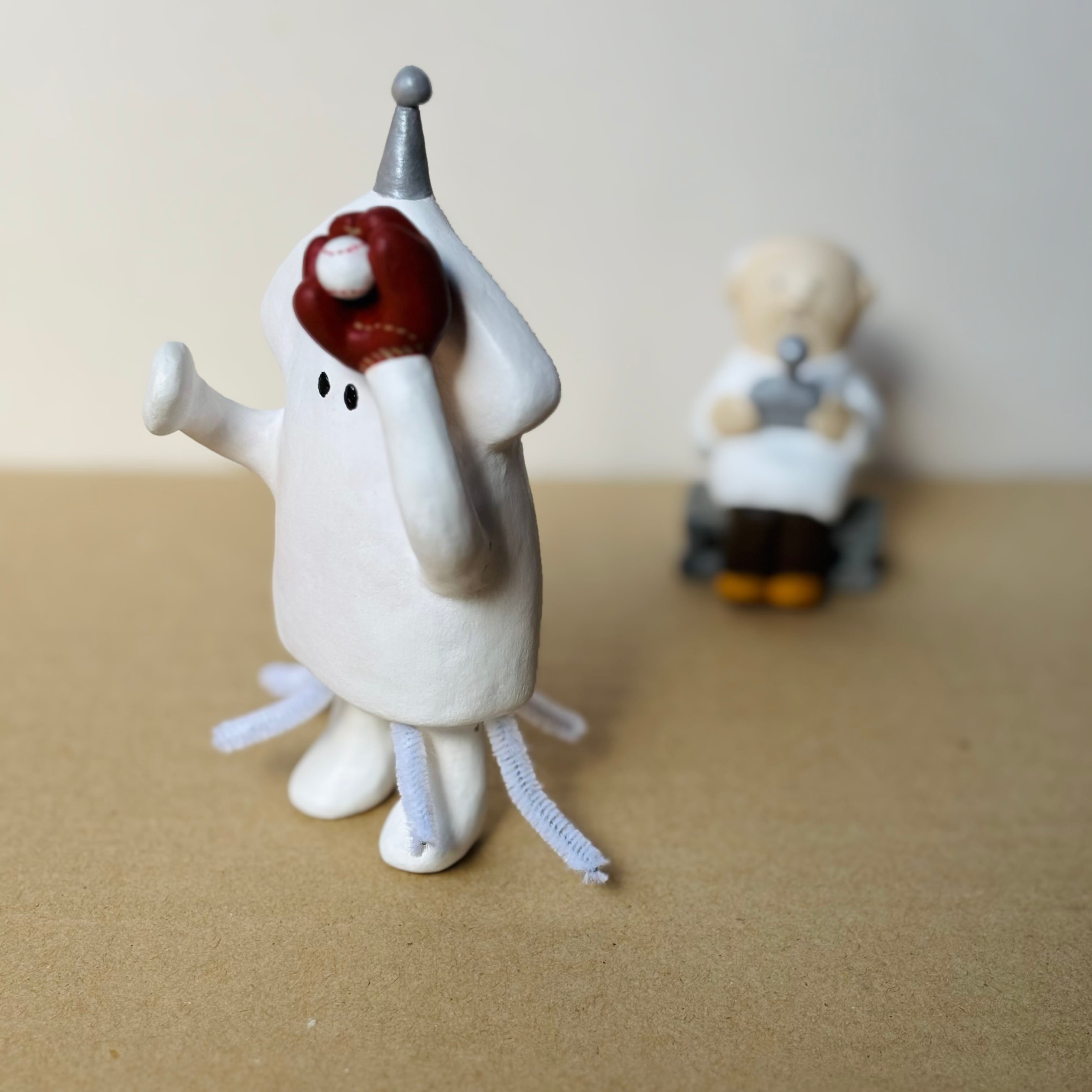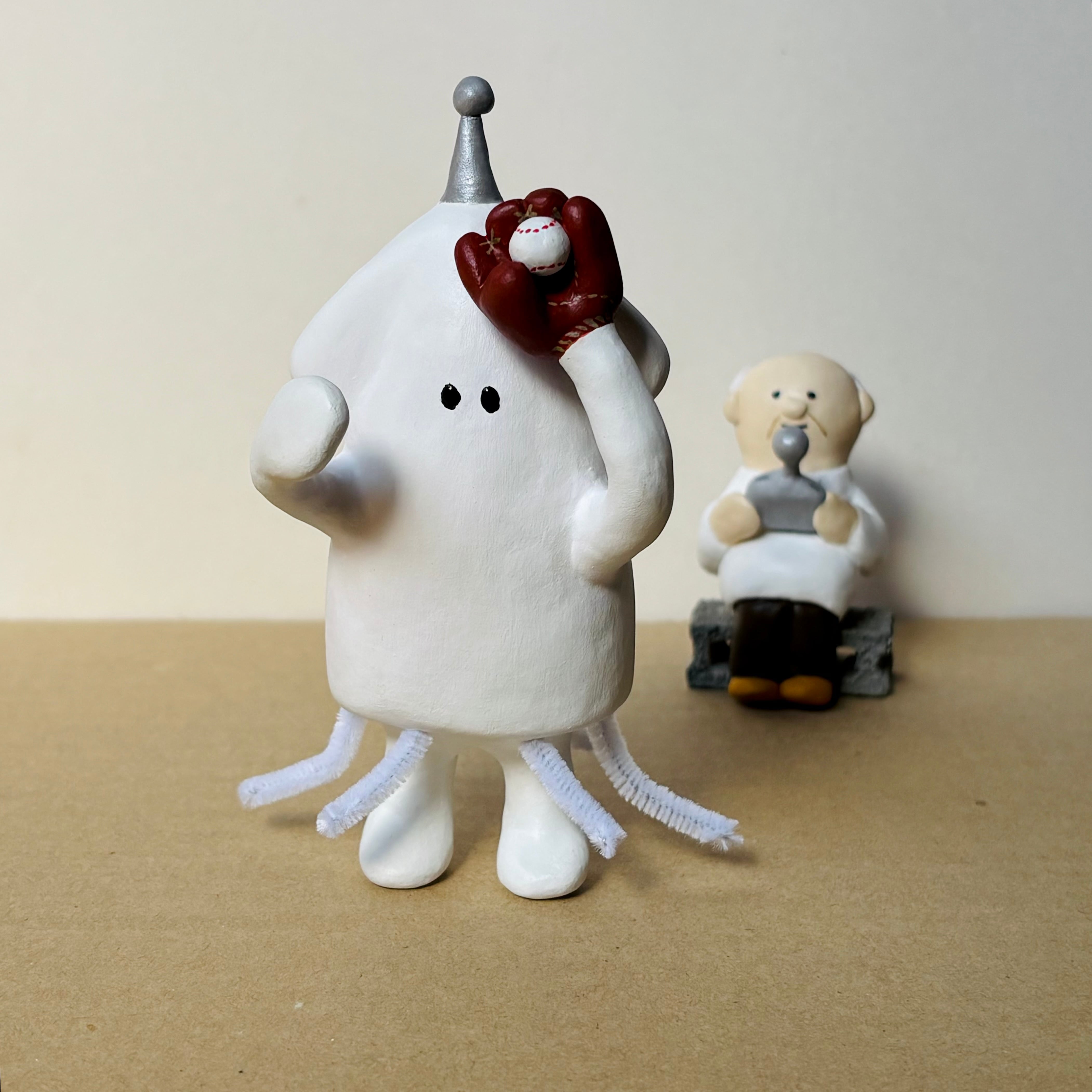 プロロボ野球チームに所属する「イカ次郎11号」とイカロボット制作歴50年の博士